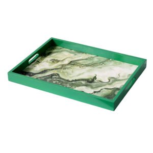 Modern Art Green Marble Texture Decorative Tray – Luxurious Gold-Veined Tray, Premium Trays with Clear Acrylic Handles for Table Centerpiece, Exquisite Marble Patterned Home Decor Display Plate, Ideal Housewarming Gift, Wedding Display and Chic Soft Furnishing