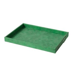 Modern Matte Emerald Green PU Tray – Minimalist Rectangular Tray, Premium Multi-functional Trays for Coffee Table & Entryway Jewelry Display, with Exquisite Metal Clasp Handles, Ideal for Home Decor, Office Organization and High-End Holiday Gift