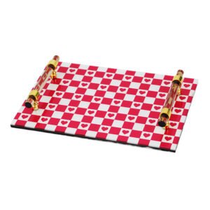 Romantic Red and White Checkered Heart Pattern Glass Tray, with Luxurious Gold Handles, Multi-purpose Desktop Jewelry Tray, Valentine’s/Party Serving Platter