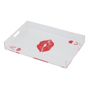 Trendy Red Lips Heart Ace Poker Design Acrylic Tray, Clear Acrylic Serving Tray with Handles, Multi-functional Desktop Jewelry Tray, Creative Party and Home Decor