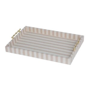 Stylish Rectangular Wooden Tray with Stripes and Gold Handles – Elegant Home DΓ©cor Tray for Serving, Organizing, and Displaying – Perfect for Coffee Table, Bedroom, and Kitchen Use