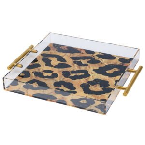 large-sized Square Leopard Print Acrylic Tray with Golden Handles, Decorative Jewelry Tray, Bathtub Tray and Tray Table