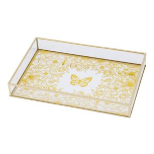 large-sized Rectangular Glass Jewelry Tray with Golden Butterfly Pattern, Elegant Decorative Tray for Bathroom, Bedroom or Living Room