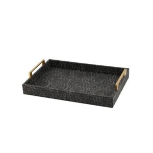 leopard print rectangular tray with metal handles