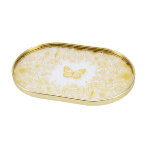 Luxury Oval Gold Butterfly Floral Tray, Decorative Metal Serving Tray with Elegant Butterfly Design, Golden Vanity Tray for Jewelry, Makeup, Perfume, Coffee Table, or Home Décor