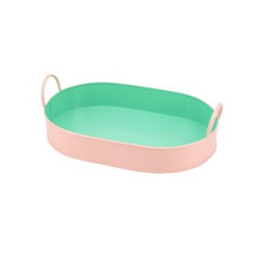 Oval Decorative Tray with Handles, Pink and Green Multi-Purpose Serving Tray or Bathtub Tray