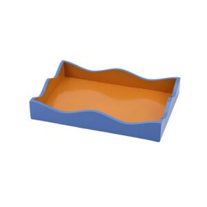 Modern Blue and Orange Lacquer Decorative Tray, Curved Wavy Edge Jewelry Tray, Stylish Bathtub Tray or Coffee Table Tray for Home Décor