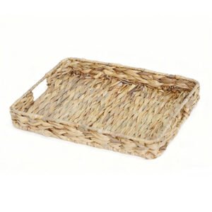 large-sized Natural Water Hyacinth Hand-Woven Tray, Rectangular with Built-in Handles, Rustic Farmhouse Storage Trays, Decorative Fruit Basket for Kitchen, Living Room, and Home Decor