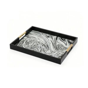 large-sized Modern Luxury Black and White Marble Texture Tray – Abstract Fluid Art Decorative Storage Organizer, Rectangular Serving Trays with Luxury Gold Handles, High-End Aesthetic Display for Coffee Table, Vanity & Entryway