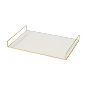 large-sized Modern Minimalist Gold Metal Mirrored Vanity Tray – Rectangular Glass Jewelry Organizer & Perfume Display, Decorative Serving Tray for Coffee Table & Bathroom, High-End Home Decor Ornament