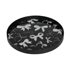 large-sized Modern Minimalist Black Metal Round Tray – Elegant Bow-Knot Print Decorative Trays, High-End Art Ornament for Coffee Table, Entryway Key Organizer & Bedroom Jewelry Display