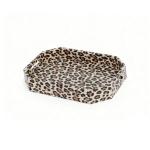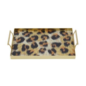 leopard print rectangular tray with metal handles