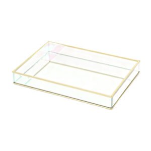 Luxury Gold Rectangular Glass Decorative Tray – Modern Minimalist Tray, Exquisite Metal Frame Trays for Jewelry and Perfume Organization, Iridescent Mirrored Base, Vintage Aesthetic Home Display, Premium Craftsmanship Desktop Art Piece Gift