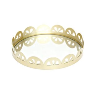 Luxury Gold Mirrored Decorative Tray – Creative Scalloped Cutout Edges, Round Metal Tray for Jewelry and Perfume Organization, Vintage Modern Aesthetic Trays for Home Office Display, Exquisite Craftsmanship Desktop Art Piece, Ideal Gift for Weddings and Anniversaries