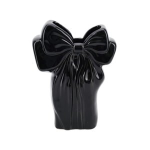 Black Ceramic Bow Vase, Sculptural Flower Vase for Home Decor, Elegant Ceramic Vase with 3D Bow Design