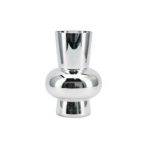 Modern Silver Metal Decorative Vase with Polished Mirror Finish, Unique Bulbous Base and Cylindrical Neck, Contemporary Shop Spring Vase and Flower Vase for Living Room, Dining Table, or Office
