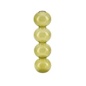 Modern green Glass Candle Holder with Stacked Round Design, Decorative Flower Vase Style Accent for Dining Table or Living Room