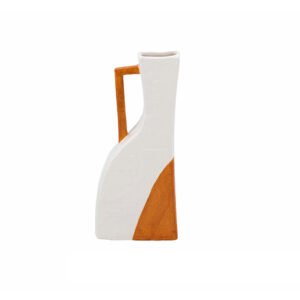 Modern Ceramic Vase with White and Orange Contrast Design, Abstract Shop Spring Vase for Flowers, Decorative Tall Flower Vase for Living Room or Office