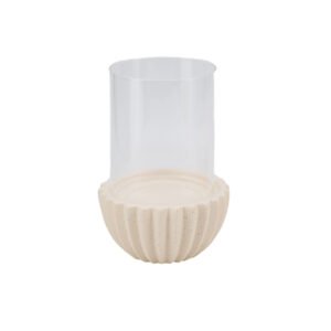 Modern White Ceramic Shop Spring Vase with Fluted Base and Transparent Glass Cylinder, Minimalist Flower Vase for Tabletop and Home Decoration