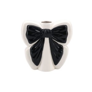 Modern Cute Black and White Bowknot Shaped Ceramic Vase, Small Caliber Flower Vase, Delicate Desktop Decorative Vase, Girly Home Decor Art Piece