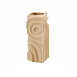 Modern Abstract Sand-Grain Embossed Ceramic Vase, Beige Square Art Flower Vase Home Decor, Wabi-Sabi/Minimalist Flower Vase Desktop Ornament