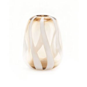 Modern Art Amber Gold Hand-Blown Striped Vase, Vintage Translucent Glass Vase for Aesthetic Tabletop Decor, High-End Abstract Pattern Flower Vase for Living Room & Luxury Gifting