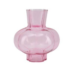 Modern Art Pink Glass Vase – Creative Pumpkin-Shaped Vase, Premium Transparent Flower Vase with Fluted Texture, Vintage European Glass Vase for Home Table Centerpiece Decor, Ideal Wedding and Interior Accent
