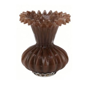 Modern Art Series Deep Amber Ruffled Fluted Glass Vase, Hand-blown Ribbed Texture vase Tabletop Decor, Vintage Rippled Creative flower vase for Home Interior, High-end Transparent glass vase for Hydroponic Flowers and Exquisite Gifting Solution
