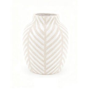 Modern Nordic Handcrafted Ceramic Vase with Embossed Herringbone Pattern, Minimalist Off-White Flower Vase for Living Room, Office Desktop, and Home Decor Centerpiece, Ideal Gift Vase for Weddings and Housewarming