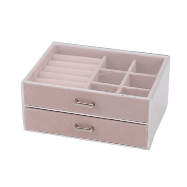 Pink Two-Layer Jewelry Box with Drawer, Velvet Organizer for Rings, Earrings, Necklaces and Bracelets