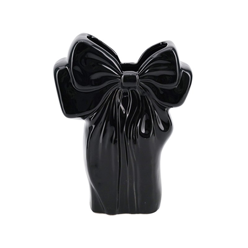 Home - HOME DECOR - Vase - Black Ceramic Bow Vase, Sculptural Flower Vase for Home Decor, Elegant Ceramic Vase with 3D Bow Design