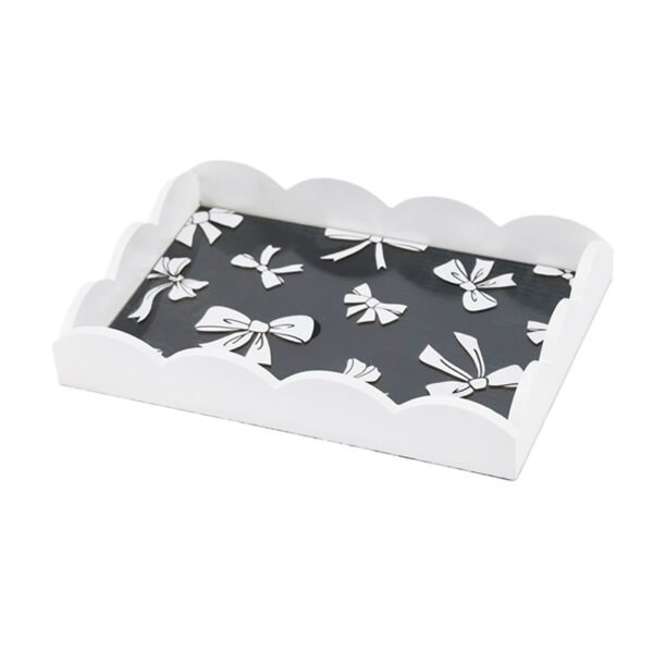 Bow-Patterned Black & White Decorative Tray with Scalloped Edge, Stylish Organizer Tray for Home, Vanity & Coffee Table Tray