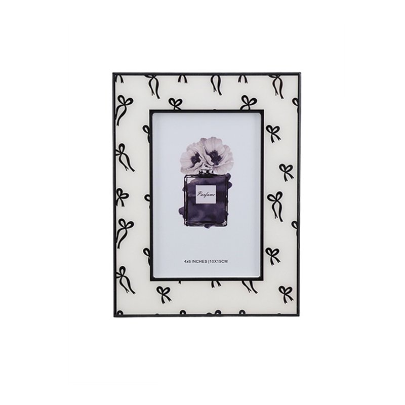 Bow-Patterned Decorative Picture Frame, Black & White 4×6 Photo Frame for Home Decor, Stylish Frame for Desktop & Wall Display