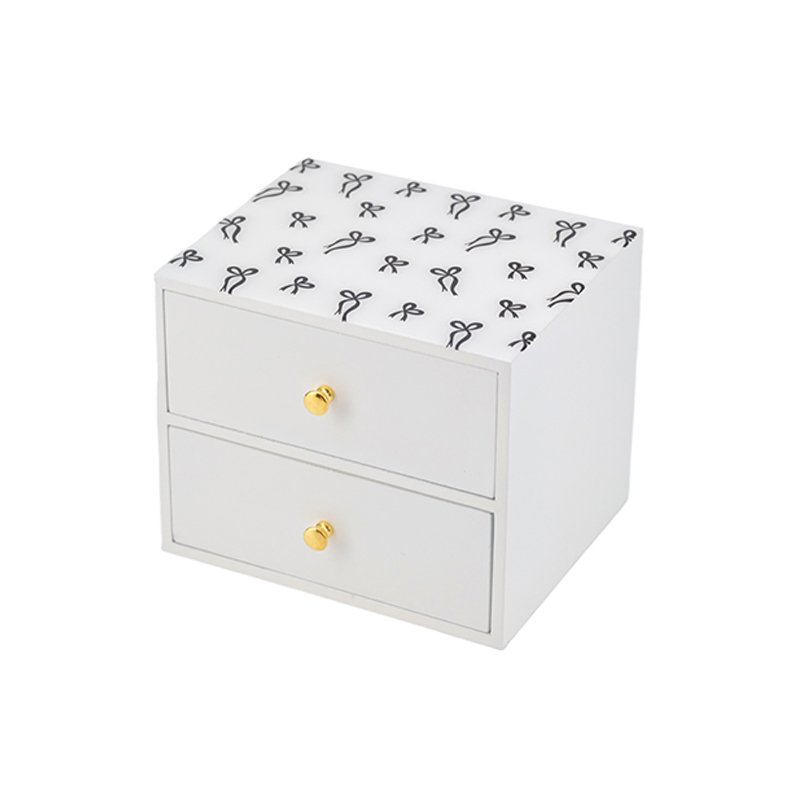 Bow-Patterned White Jewelry Box with Gold Knobs, 2-Drawer Decorative Storage Box for Home, Stylish Organizer for Accessories
