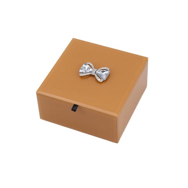 • Unique Brown Glass Design – This jewelry box is made from brown-toned glass with a refined silver bow accent, combining elegance with warmth.