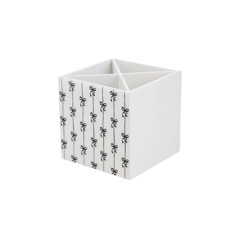 Chic Black and White Bowknot Pattern Four-Compartment Desktop Organizer, Stylish Cube Pen Holder/Makeup Brush/Stationery Caddy, Light Luxury Minimalist Home Decor Office Accessory