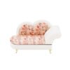 Classic Chaise Lounge Mini Sofa Ornament with Curved Backrest, Pink Floral Cushion, White Frame and Golden Legs, Decorative Figurine for Living Room or Christmas Ornaments