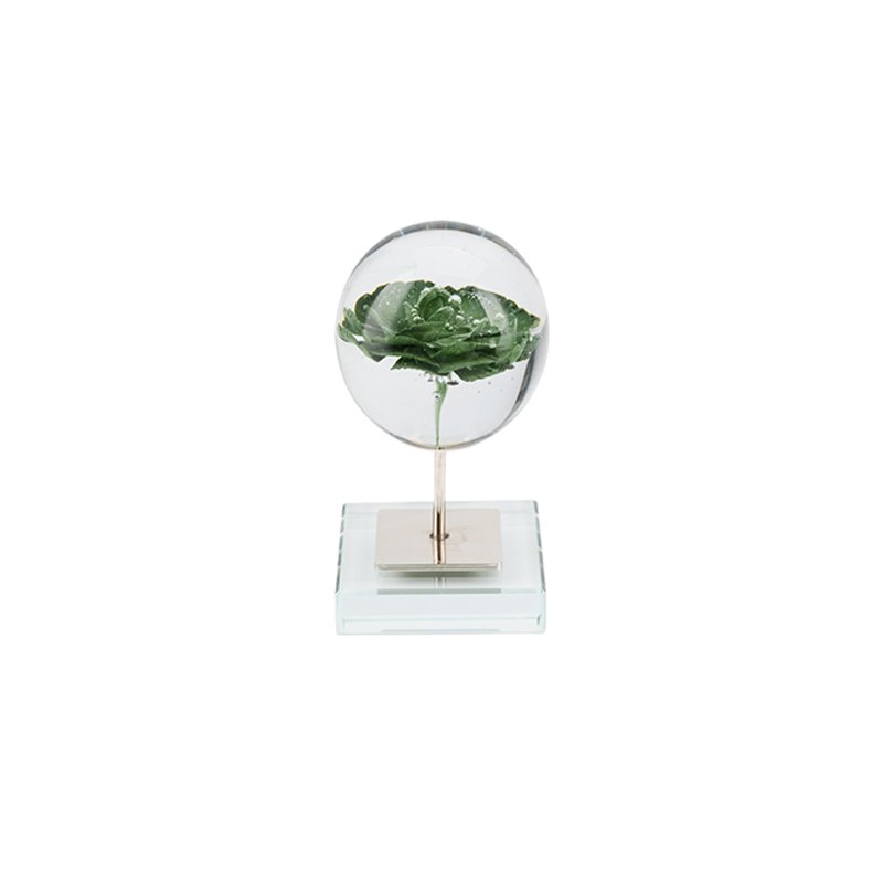 Home - HOME DECOR - Ornament - Clear Crystal Globe Decor with Embedded Green Succulent, Modern Glass Sculpture on Square Base for Home Decor