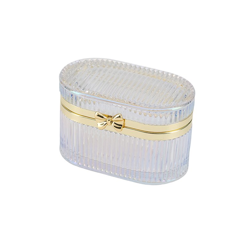 Clear Textured Glass Jewelry Box with Gold Bow Accent – Elegant Oval – Shaped Storage Case for Precious Jewelry