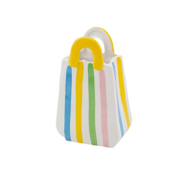 - ★Vibrant Hand-Painted Stripes – Designed with colorful vertical stripes and a bright yellow handle, this ceramic vase adds a cheerful, modern, and artistic touch to your décor.