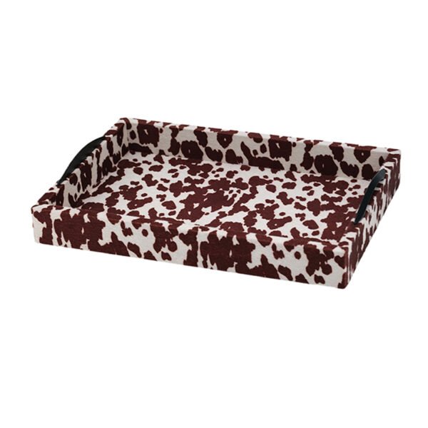 Home - HOME DECOR - Tray - Cowhide Pattern Rectangular Tray, Brown and White Spotted Decorative Tray with Side Handles, Ideal for Tea, Coffee, Beverages, or Jewelry Tray Storage