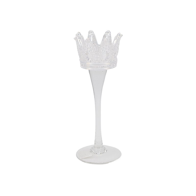 Creative Crown Shape Glass Candle Holder, Clear Tall Stem Glass Candle Stick Holder, Luxury Wedding Party Decoration, Perfect for Holidays, Events, and Home Centerpiece