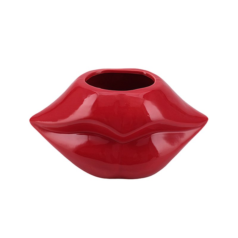 • Unique High-Gloss Red Lip Shape: This vase features a bold and expressive red lip shape design. The surface is finished with a vivid, high-gloss red glaze, giving it a strong luster. The top opening is cleverly placed in the center of the “lips”, making the overall shape modern, artistic, and playfully eye-catching.