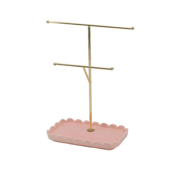 Home - HOME DECOR - Jewelry rack - double-rod jewelry rack with pink scalloped tray