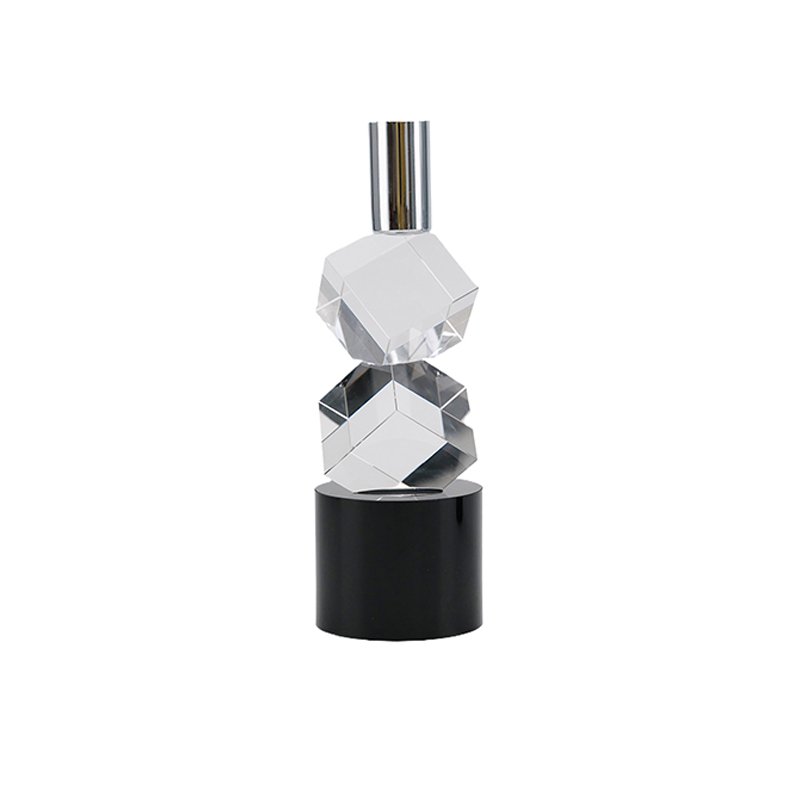 Elegant Clear Crystal Geometric Candle Holder with Black Base Modern Candle Stick Holder for Table Centerpiece, Wedding, or Luxury Home Décor Display
