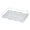 Home - HOME DECOR - Tray - Elegant Rectangular Silver Metal Tray with Wavy Edge Design and Mirrored Base, Multi-Purpose Jewelry Tray, Vanity Tray, and Bathtub Tray for Perfume, Cosmetics, and Home Decor