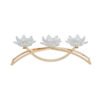 - ★Grand Arch Design & Triadic Lotus Visual Construction- This candle holder delivers a powerful visual impact, featuring a streamlined metallic arch as its primary structural support with soft yet tense lines. Three crystal-clear lotuses are arranged horizontally along the arch, each composed of layered, pointed-cut petals that precisely capture the essence of a blooming lotus. The central petals surround a transparent crystal candle socket; this “triadic” horizontal layout endows the piece with a balanced and solemn artistic beauty, making it the undisputed focal point of any tabletop display.