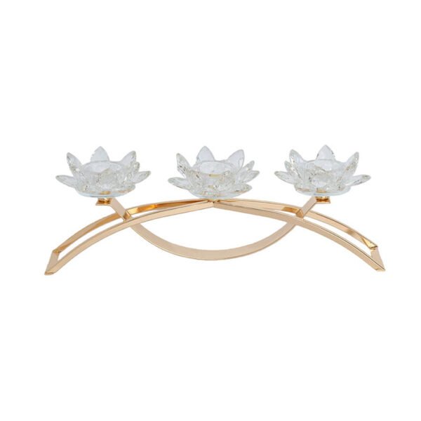 Home - HOME DECOR - Candle Holder - European Art 3-Arm Lotus Candle Holder – Luxurious Golden Arch Crystal Candle Holder, Exquisite Hand-Cut Glass Lotus Centerpiece, Modern High-End Metal Candelabra for Wedding Gifts, Zen Meditation and Festive Dinner Decor