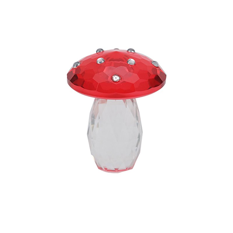- ★Clear Faceted Mushroom Silhouette: This figurine is modeled after a classic mushroom, divided into a cap and a base. The cap section is made from brilliant red crystal material and features multiple faceted cuts to maximize light refraction. The cap’s surface is accented with several inlaid sparkling rhinestones or diamonds. The base is crafted from transparent faceted crystal, which is thick and stable, giving the entire design a dreamy, fairy-tale aesthetic.
