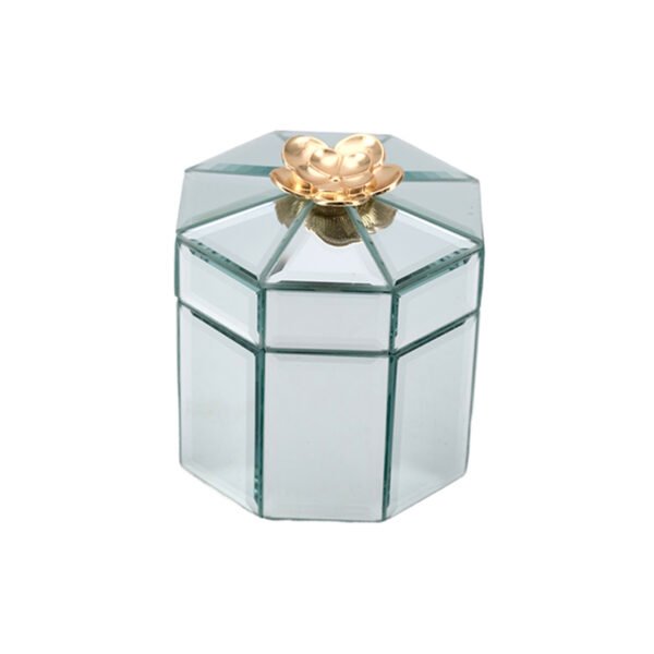 Home - HOME DECOR - Jewelry Box - Octagonal Glass Jewelry Box with Gold Flower Knob, Clear Mirrored Surface Small Jewelry Box for Women